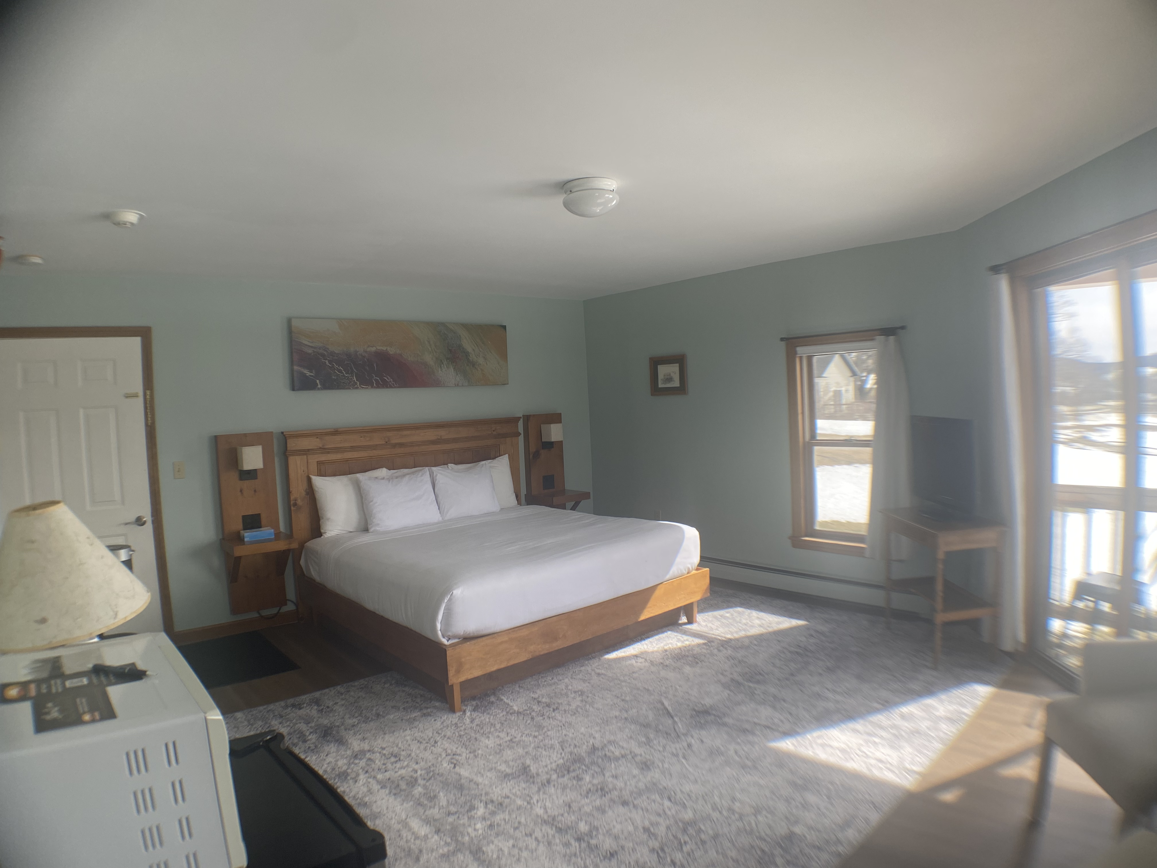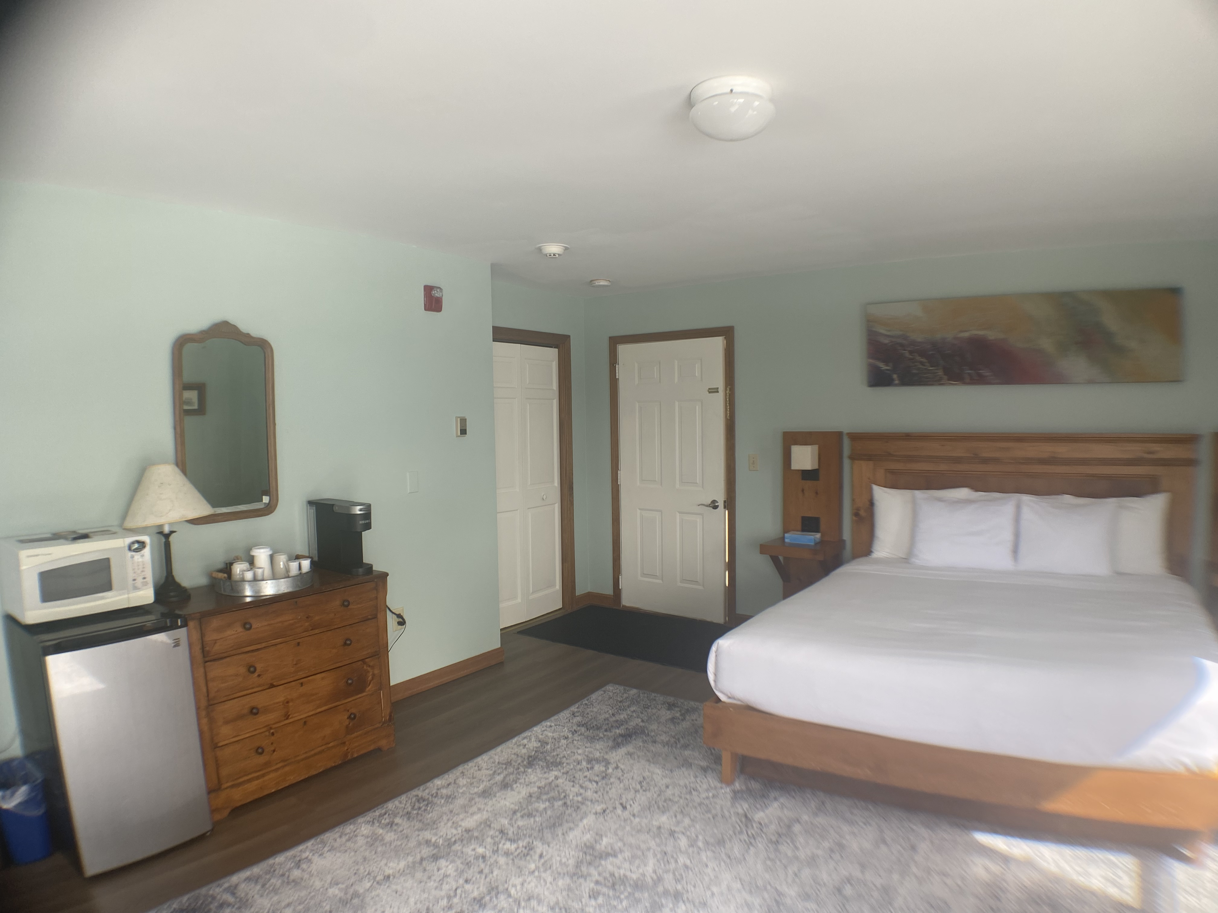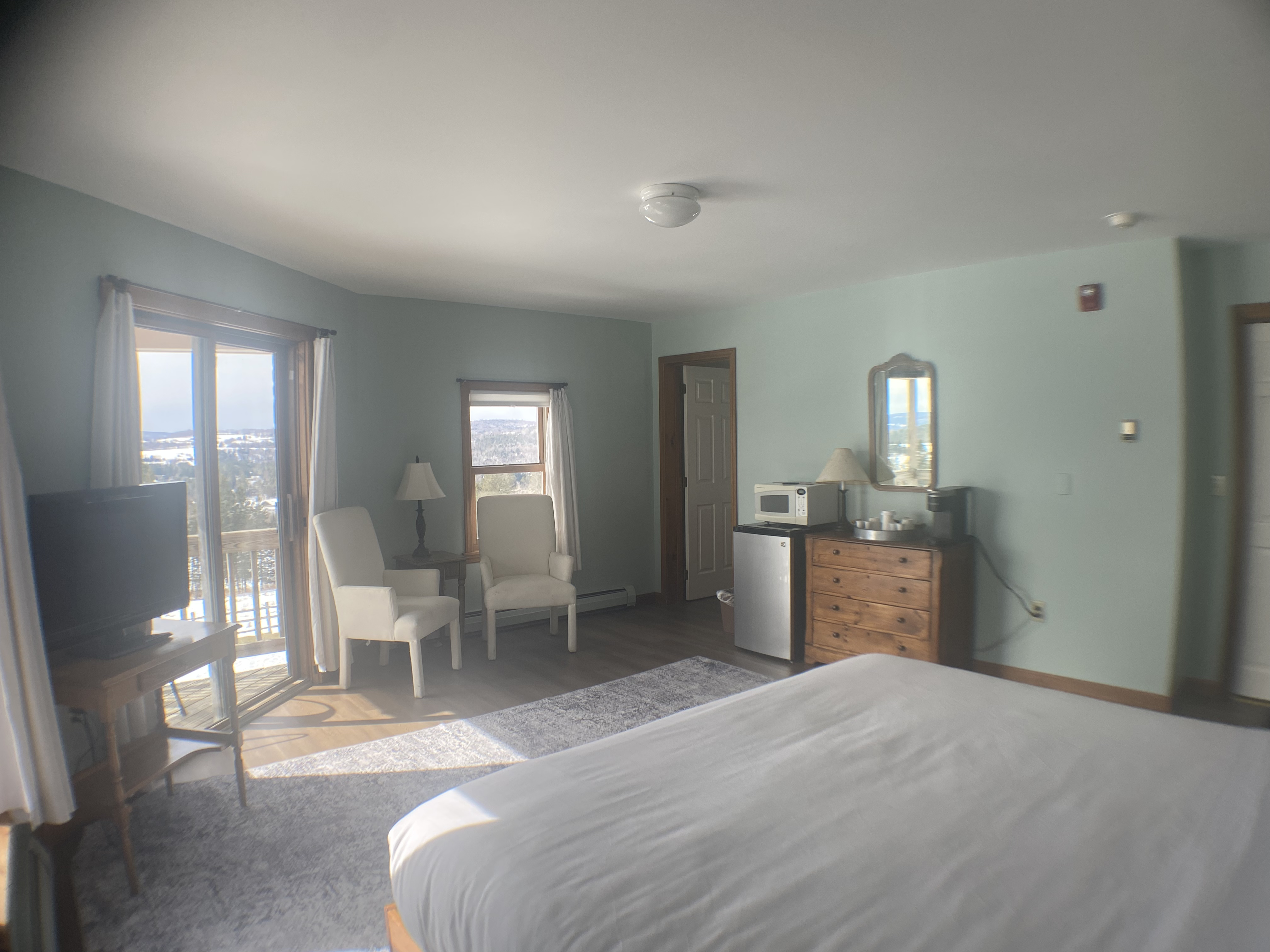 Ideal for a couple seeking a romantic escape or the solo adventurer in pursuit of tranquility, this space is designed for ultimate comfort. Revel in the luxury of a king bed, and savor the charming ambiance of a corner balcony that invites you to unwind. A well-appointed coffee station, a convenient microwave, and a fridge provide the essentials for a cozy retreat.