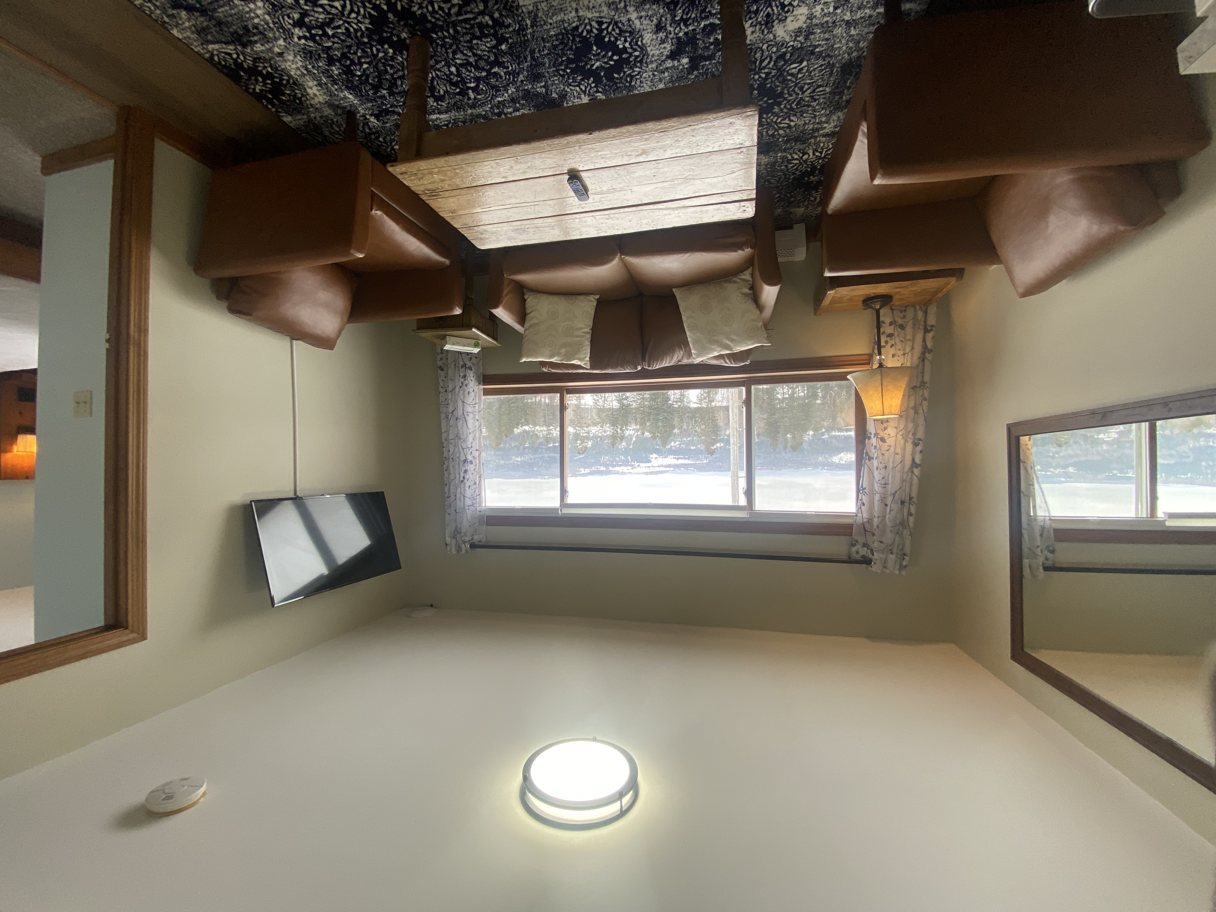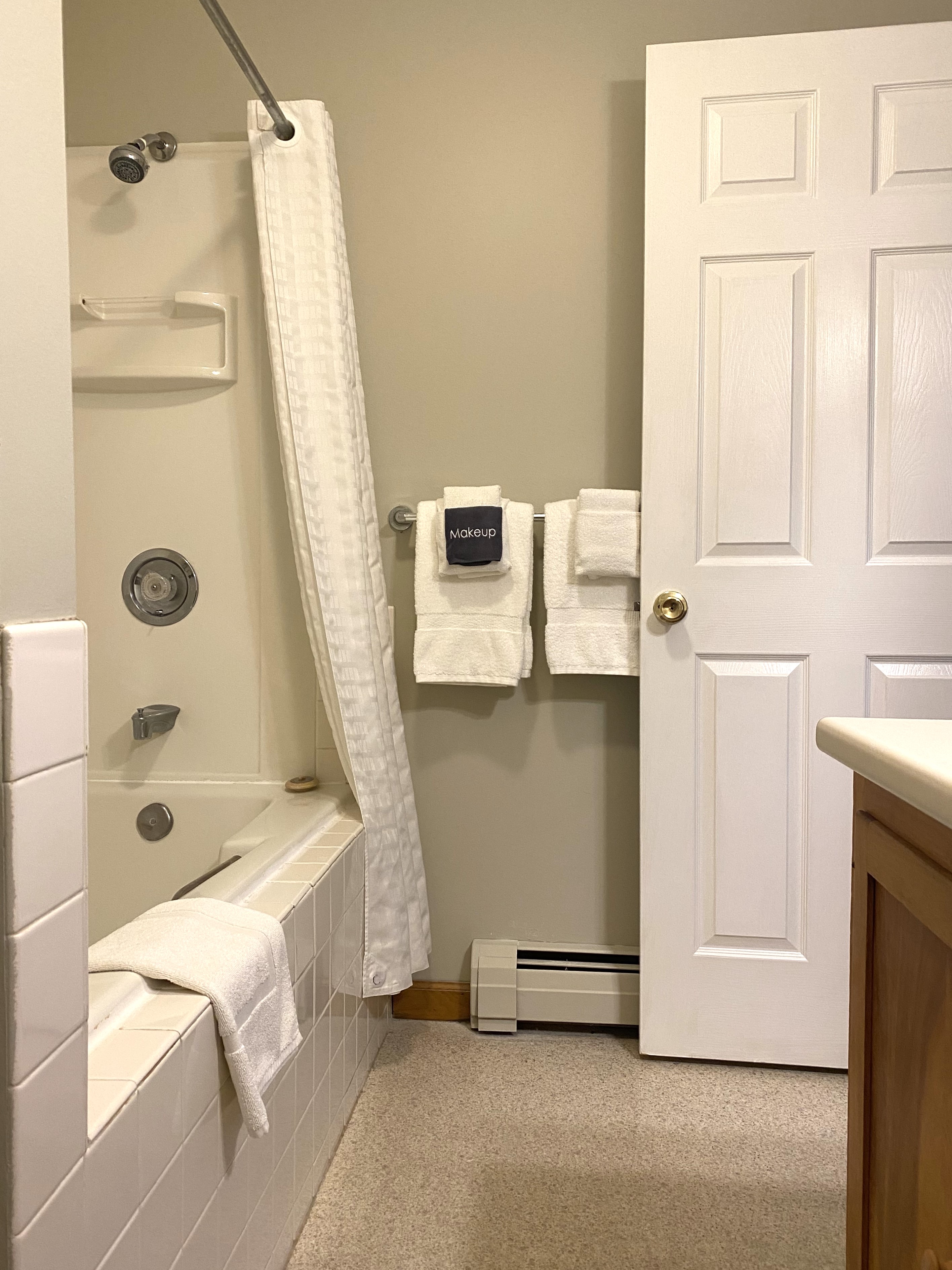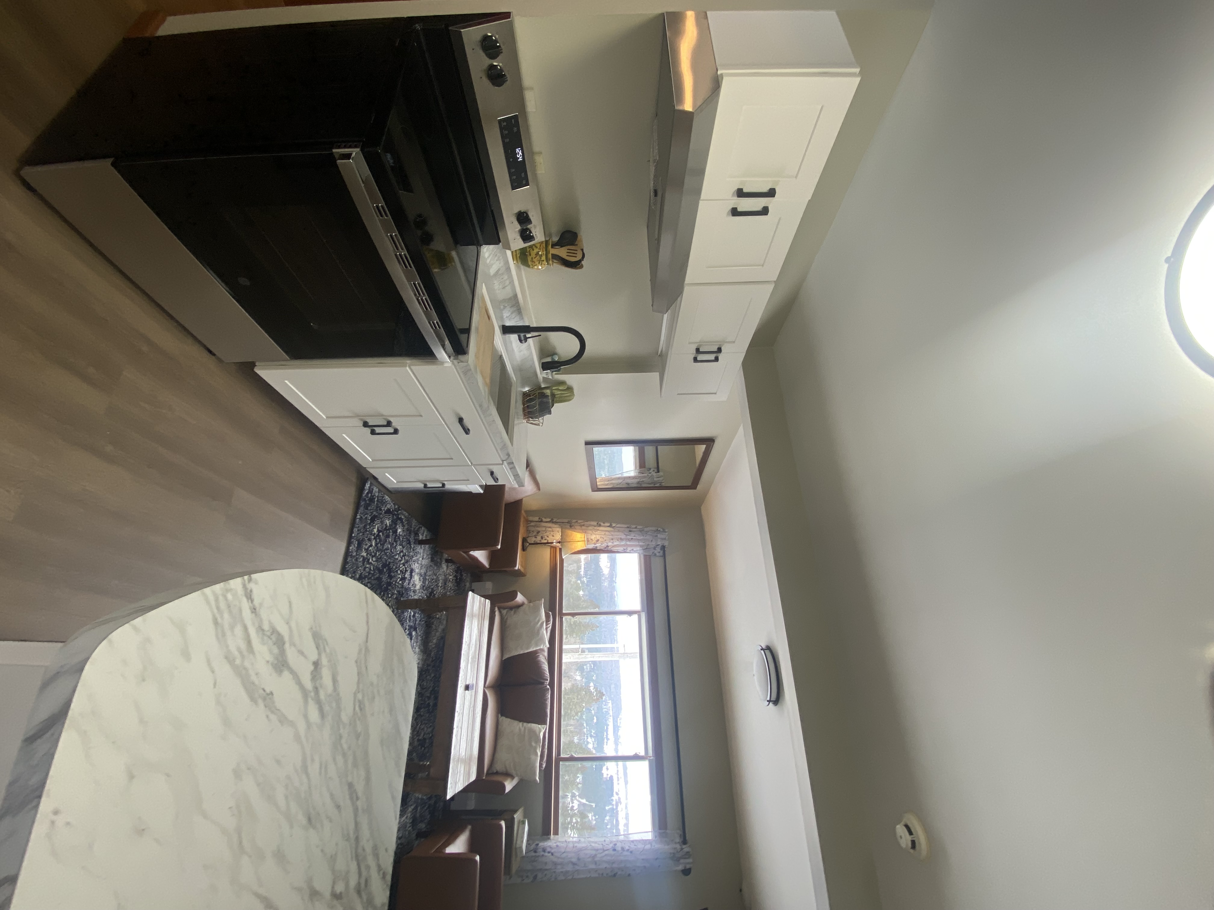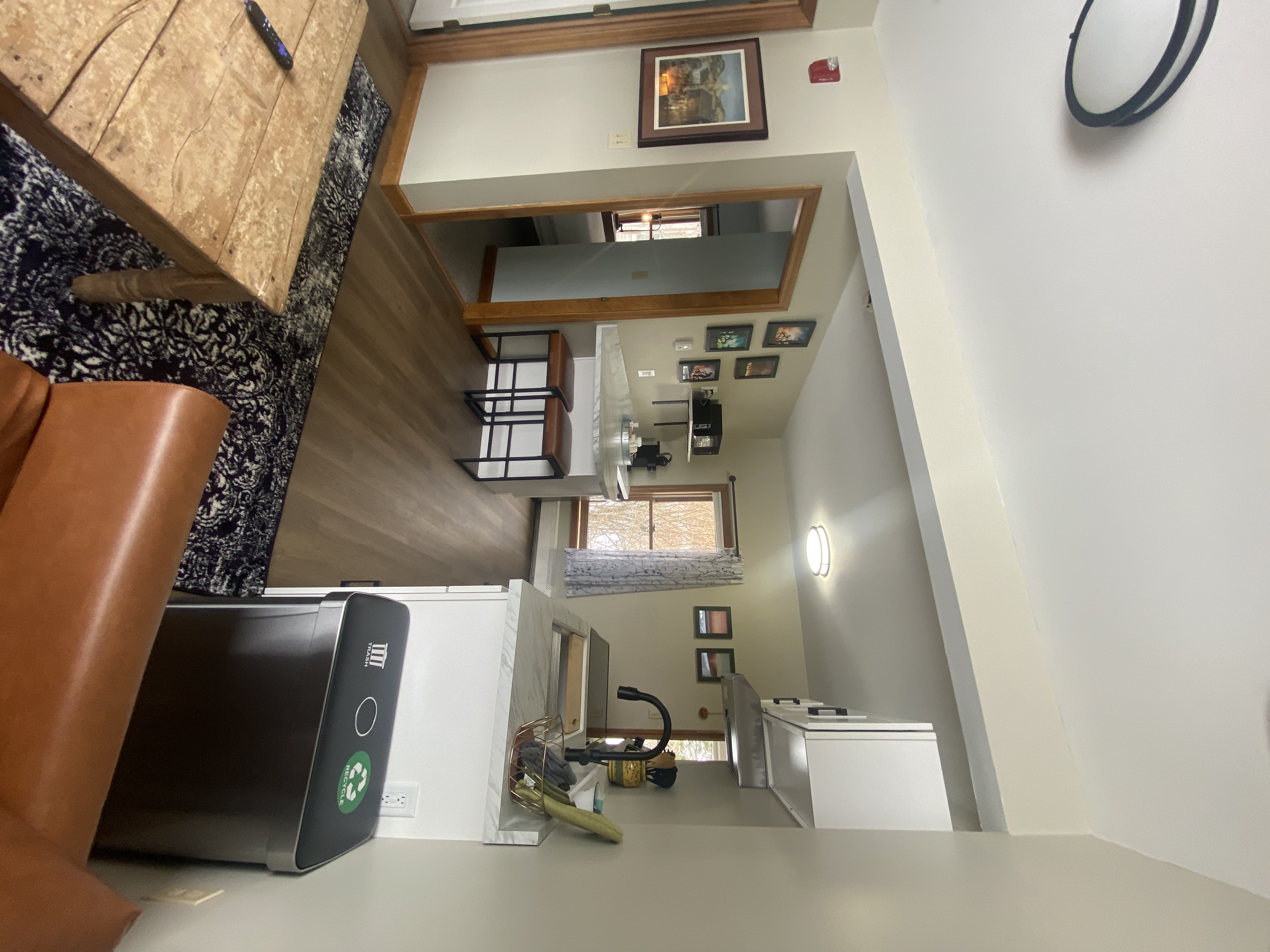 The living and dining area provides a relaxed gathering space with a Roku TV and the suite now includes a full kitchen, making it ideal for extended visits or anyone who enjoys the ease of cooking and settling in. After a day exploring the Northeast Kingdom, return to a space that feels both functional and welcoming.