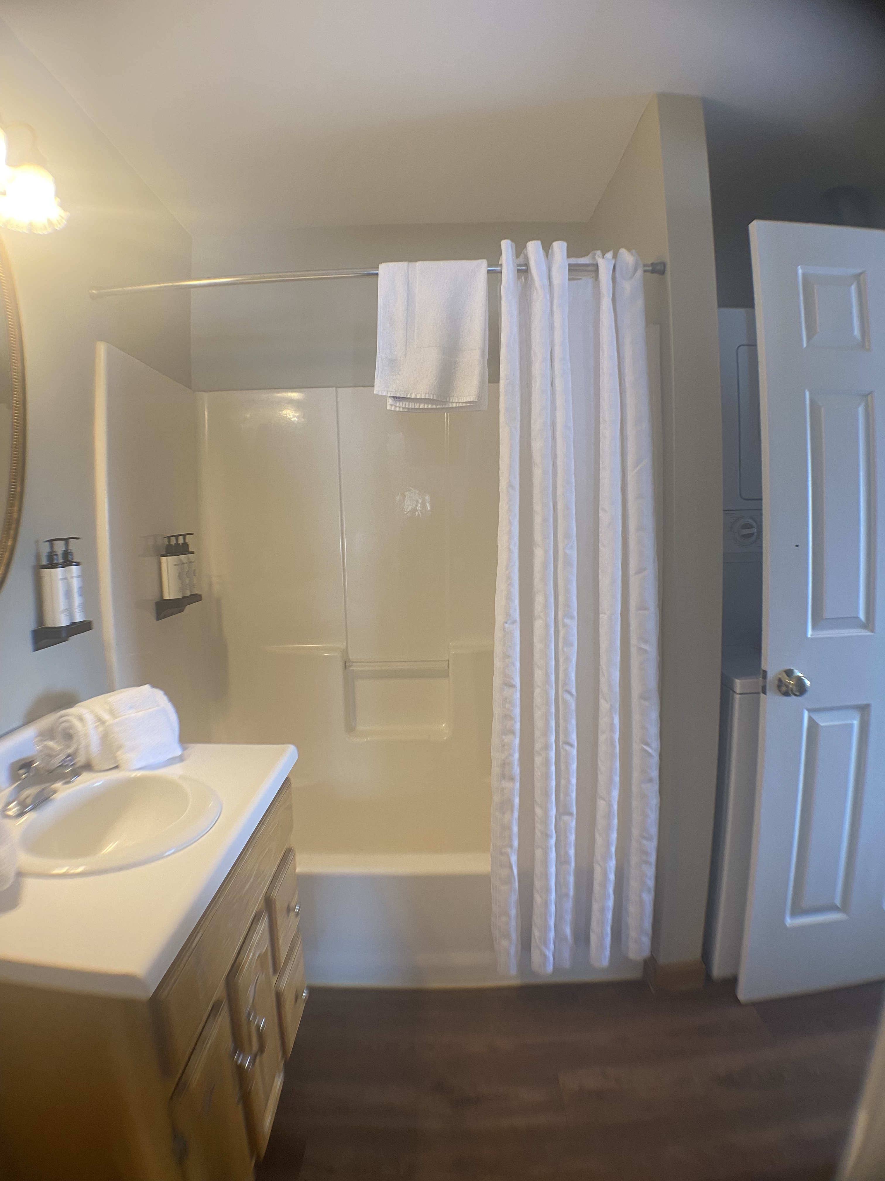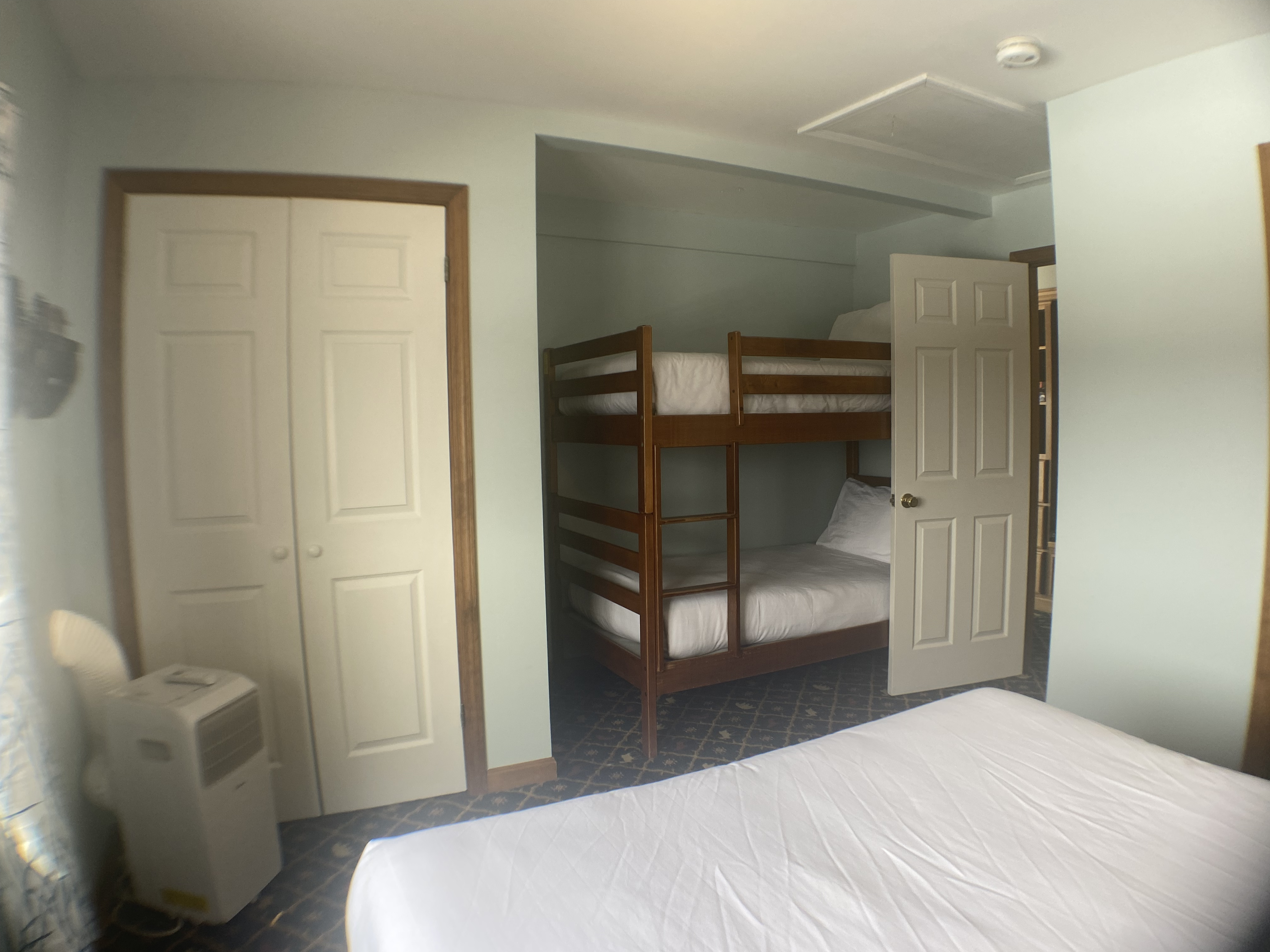 The living room, featuring picture windows and direct access to the outdoor patio, offers unparalleled views that serve as a wellspring of inspiration for your next adventure. The guest bedroom features a queen bed and bunk beds. A second full bathroom and a convenient washer/dryer further enhance the accommodation, ensuring absolute comfort for extended excursions. Immerse yourself in the Grand Meadow Suite – where luxury and functionality intertwine for an unparalleled retreat.