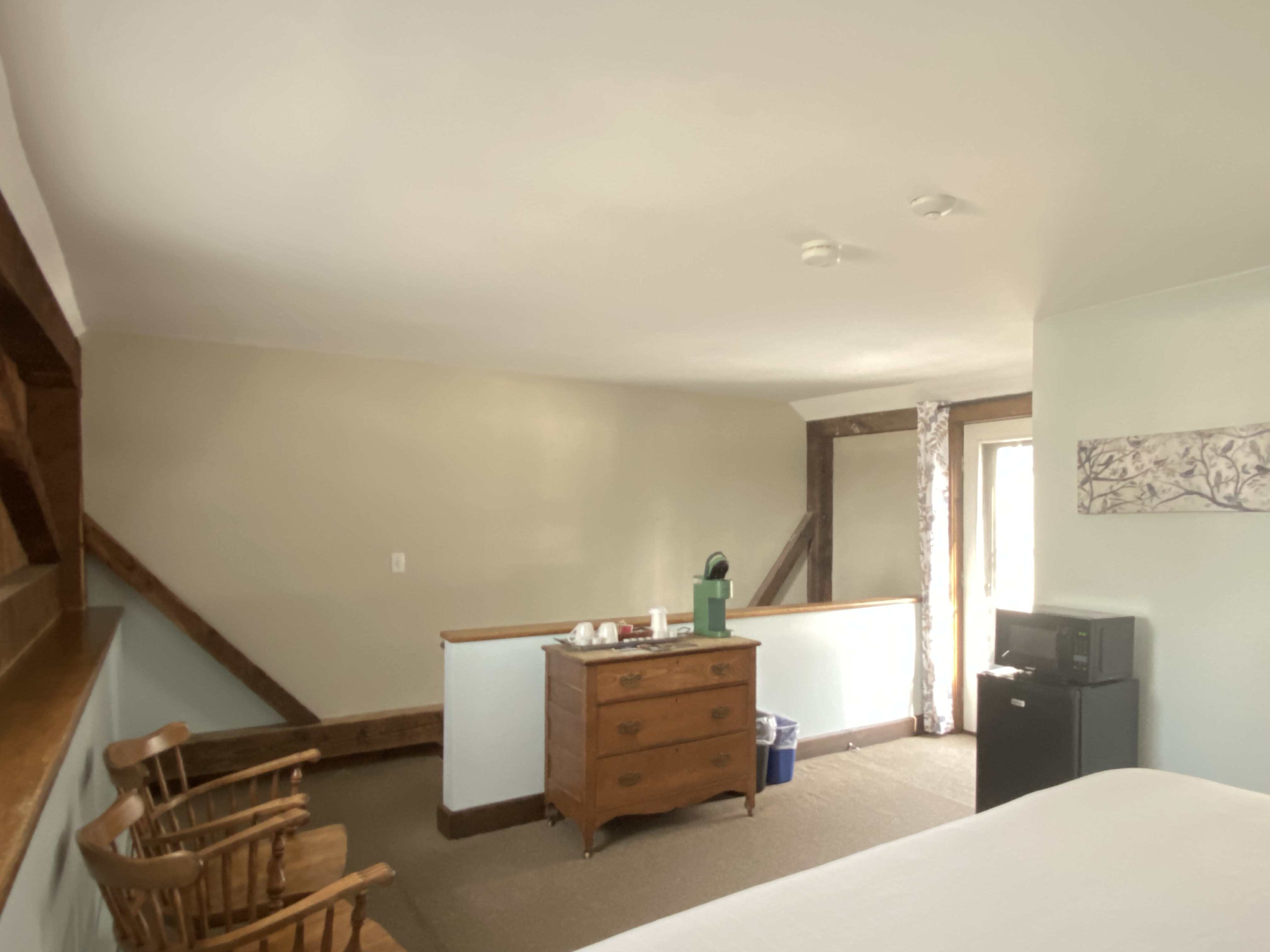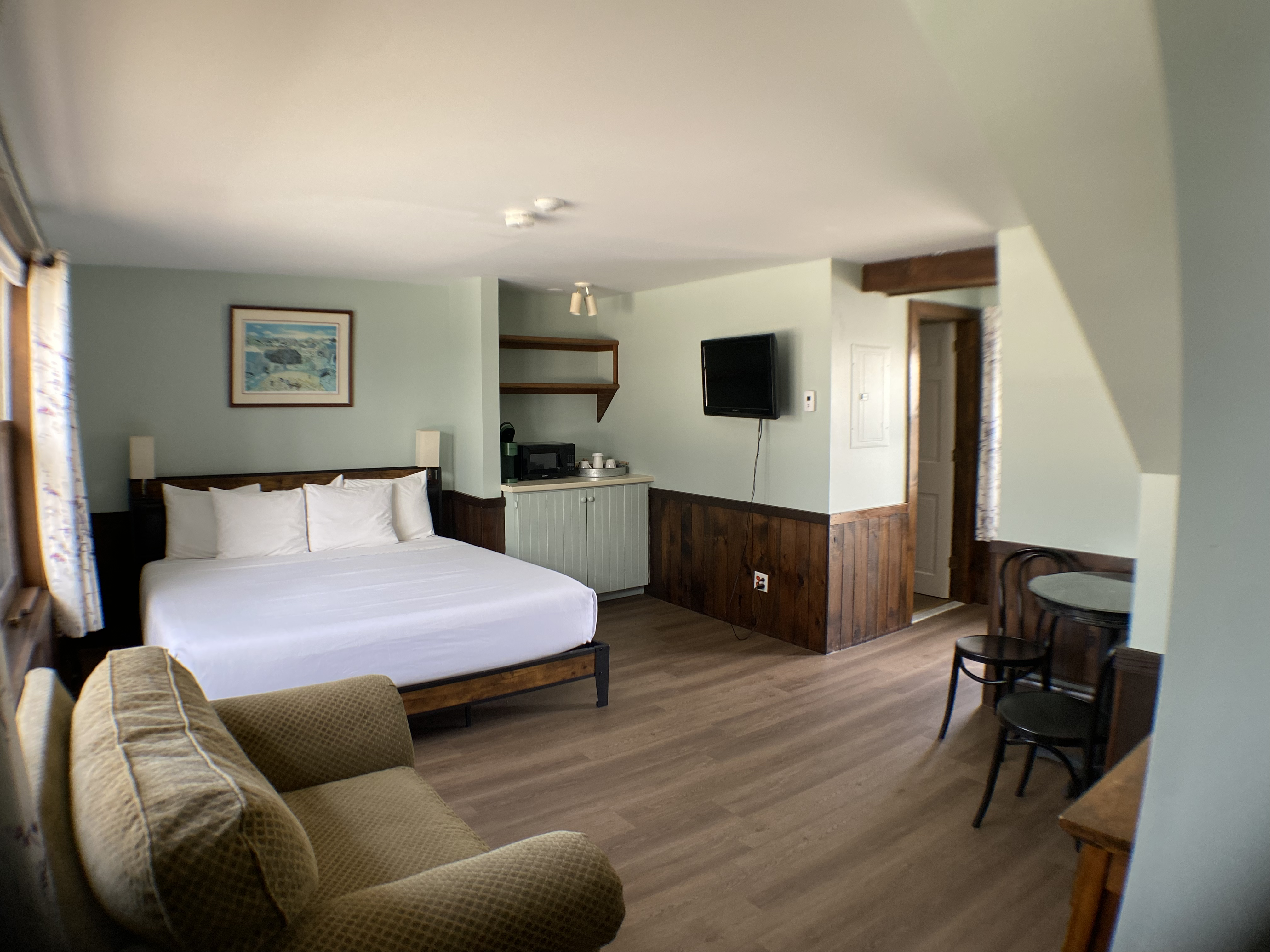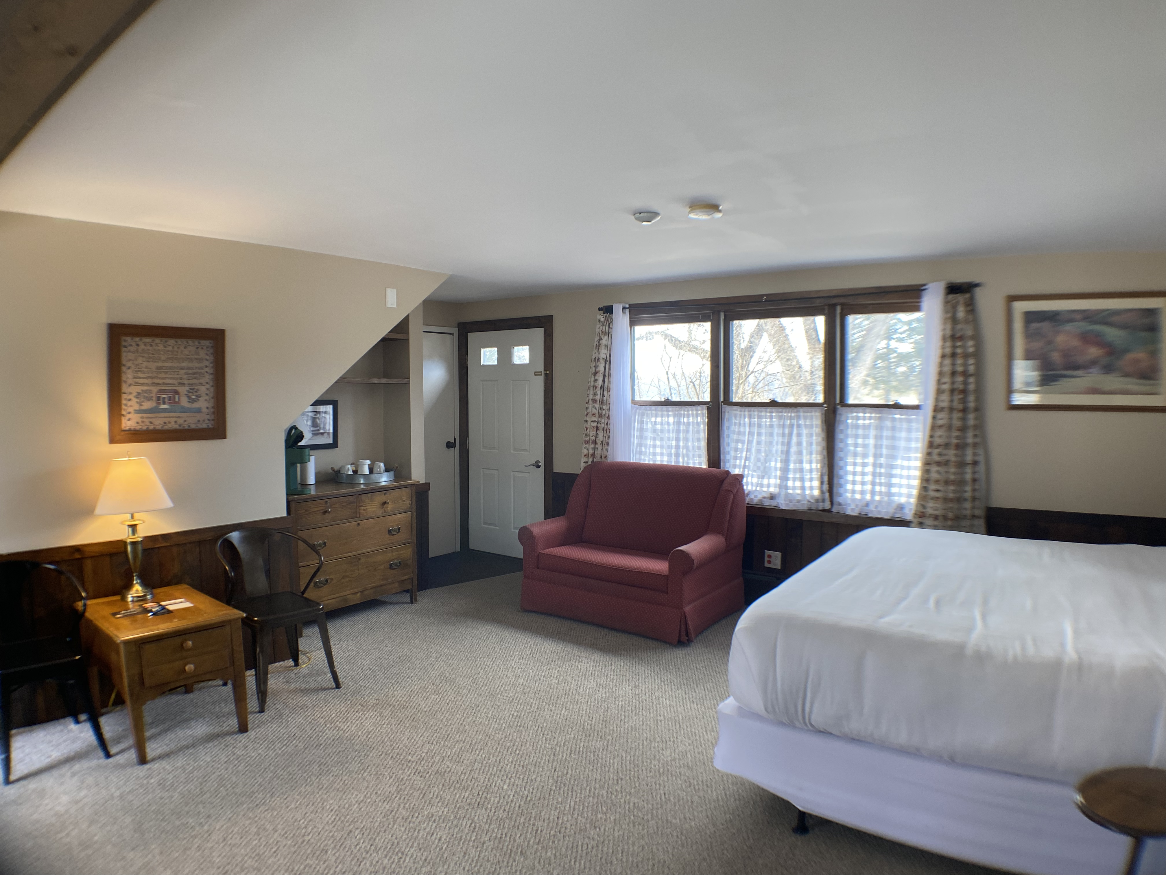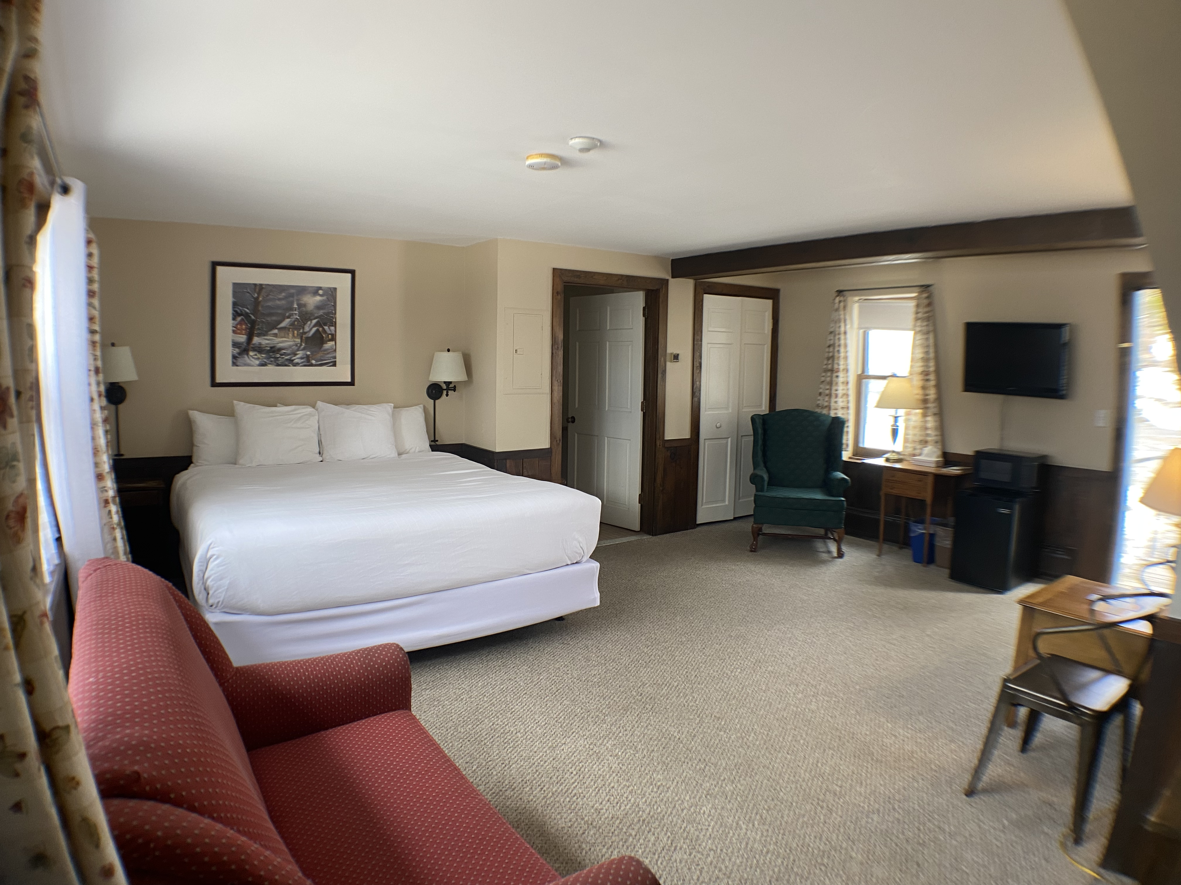 Indulge in the allure of these appealing guest rooms within the Carriage House, each featuring a king bed, a private bathroom, and additional conveniences such as a microwave, refrigerator, and coffee maker. Your comfort is further complemented by the ease of parking just outside your entrance, ensuring a seamless and hassle-free arrival.